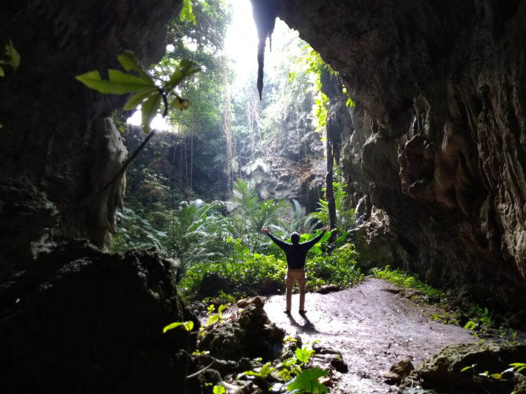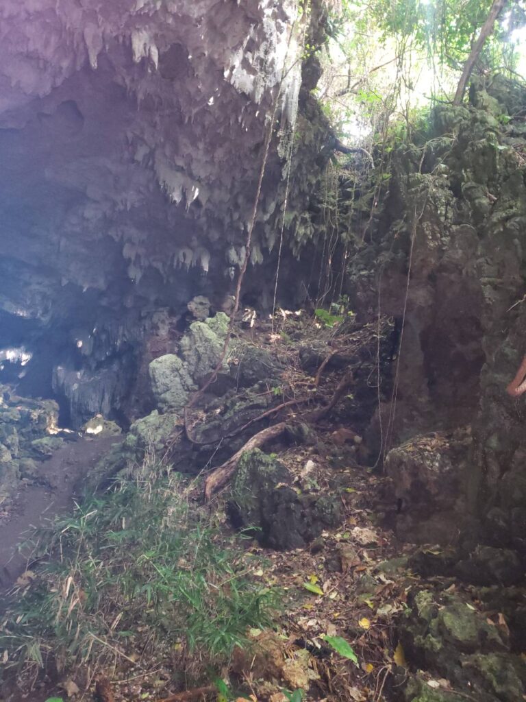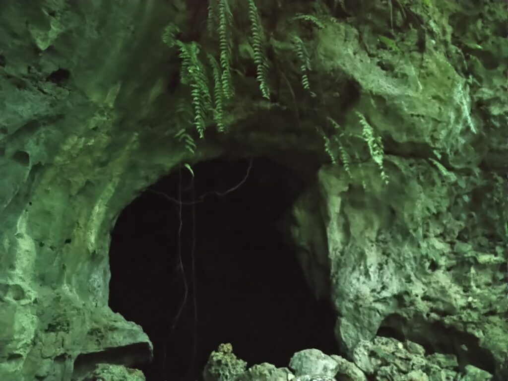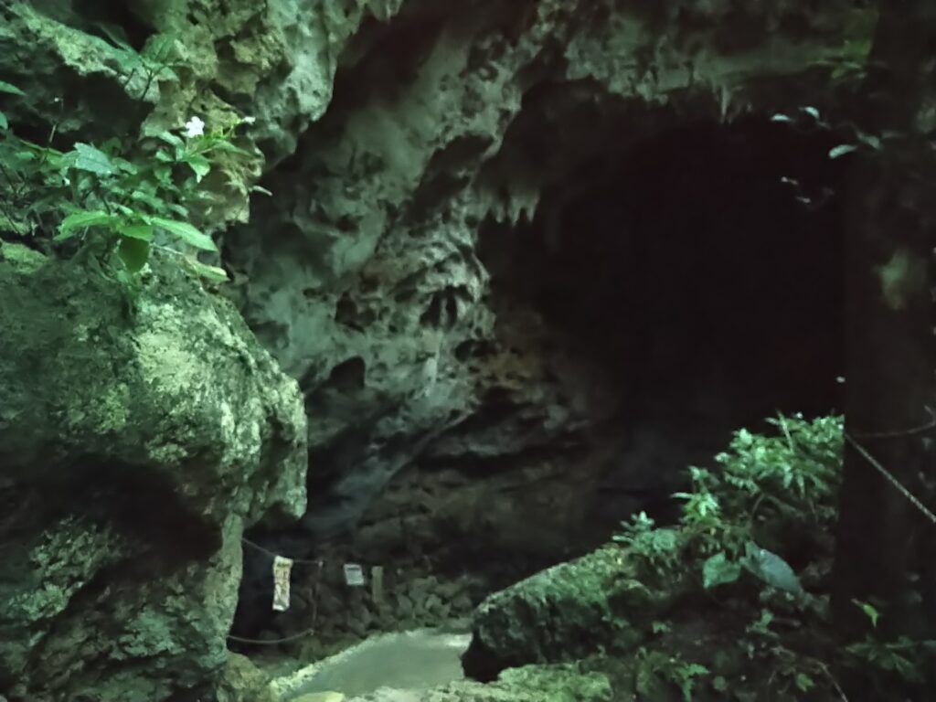 村長にもらった地図の場所は、ここから1時間くらい歩いた、入江の真ん中にポツンと森があり、中央に洞窟へはいる階段があると言う事だった。